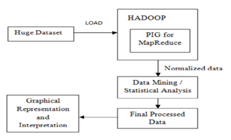 Before analysing the data, the main pre-requisite is that the data must be normalized for performing Statistical Analysis. Hadoop is used as a first stage for the large dataset and PIG MapReduce is adopted for the normalisation of the dataset. Later, the statistical analysis is performed and the results are interpreted. The following figure explains clearly the steps involved in this process.