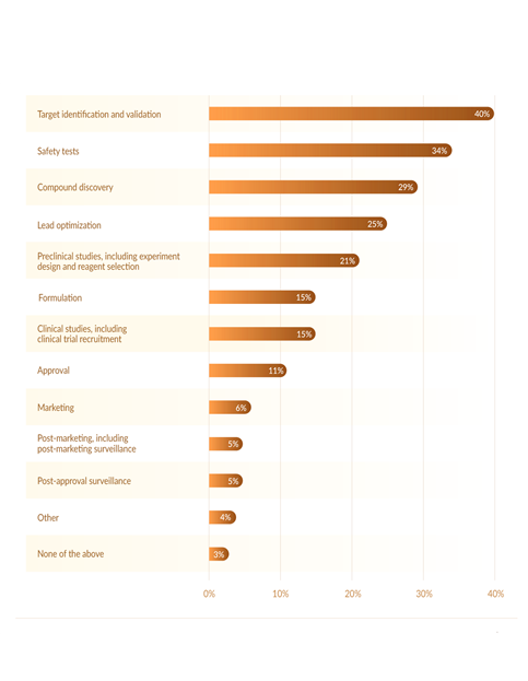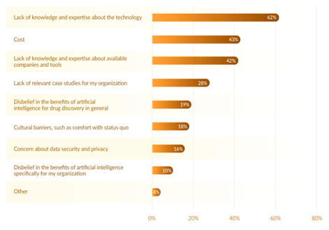 Many Scientists are still unaware of AI in Drug Discovery. Given innovations and extensive media coverage for AI, it’s predictable that 59% of scientists are familiar with it. There are many AI drug discovery startups offering results for every stage of the procedure, from exploration to broadcasting. Yet among scientists whose administrations use AI, the focus is slowly on target documentation and authentication, security tests, complex discovery, and leading optimization.