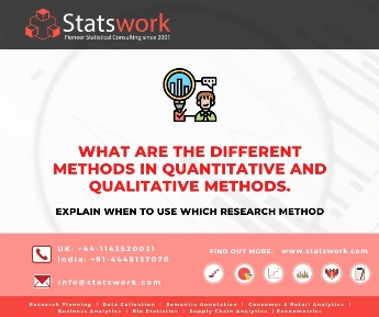 What are the different methods in quantitative and qualitative methods? Explain when to use which research method