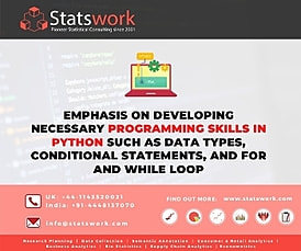 Emphasis on developing necessary programming skills in Python such as Data Types, Conditional statements, and FOR and WHILE Loop