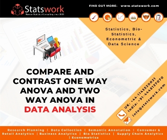 Compare and contrast one way ANOVA and two way ANOVA in data analysis