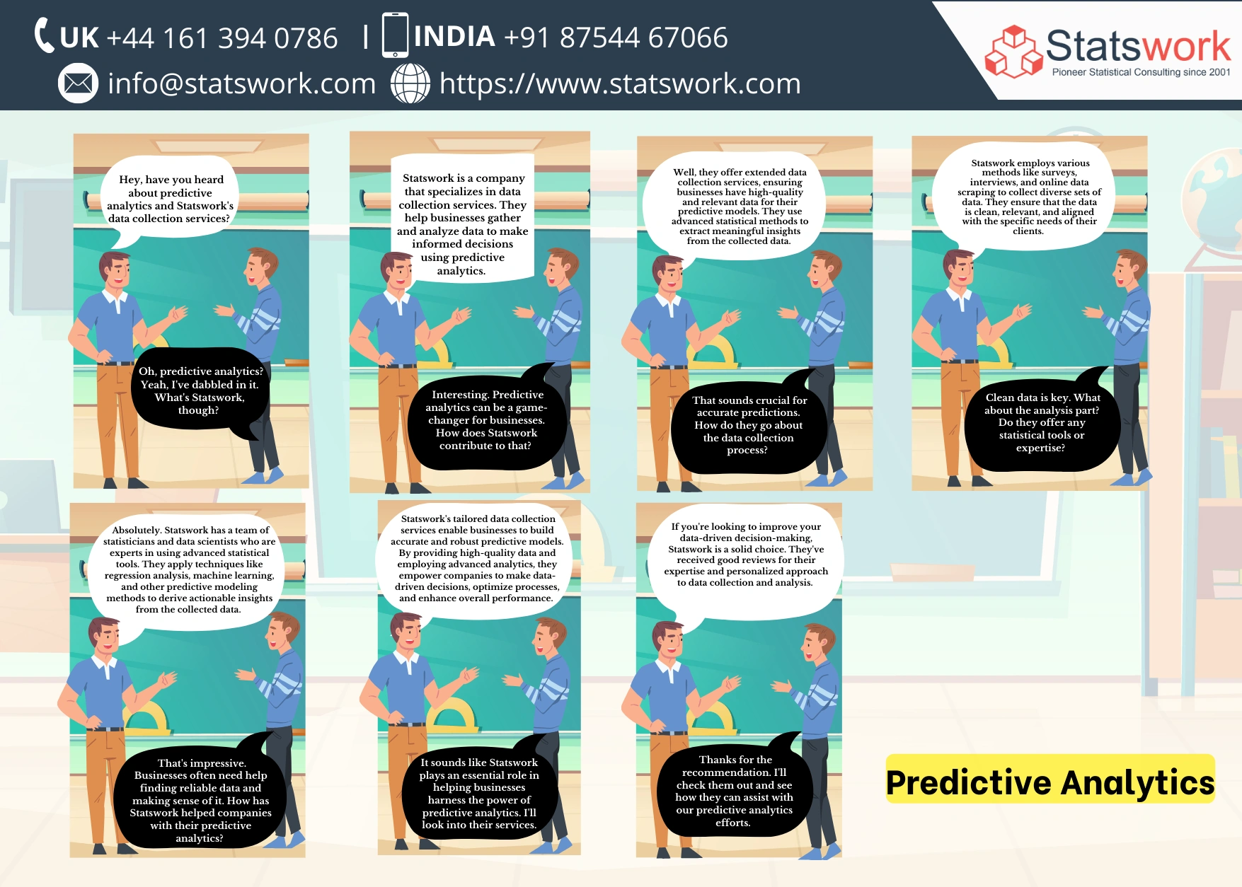 Statswork specializes in predictive analytics consulting. Their team of skilled statisticians leverages data mining techniques to predict outcomes, optimize operations, and provide valuable insights for informed decision-making across various industries.